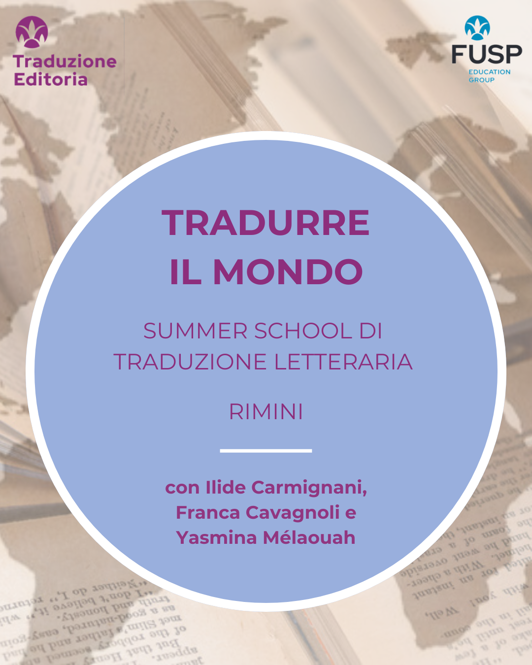 La Summer School della FUSP si terrà nella nostra sede di Rimini (Corso d'Augusto, 62) e sarà di 20 ore. I partecipanti potranno scegliere fra il laboratorio di traduzione letteraria anglofona, condotto da Franca Cavagnoli, di traduzione letteraria francofona, condotto da Yasmina Mélaouah, e di traduzione letteraria ispanofona, condotto da Ilide Carmignani.