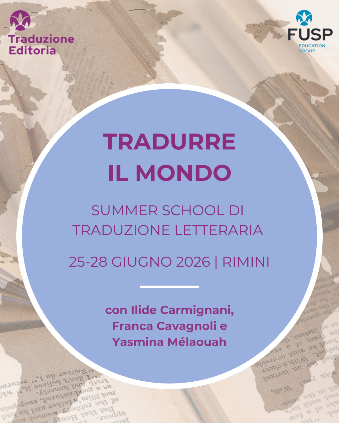 La Summer School della FUSP si terrà nella nostra sede di Rimini (Corso d'Augusto, 62) dal 25 al 28 giugno 2026 e sarà di 20 ore. I partecipanti potranno scegliere fra il laboratorio di traduzione letteraria anglofona, condotto da Franca Cavagnoli, di traduzione letteraria francofona, condotto da Yasmina Mélaouah, e di traduzione letteraria ispanofona, condotto da Ilide Carmignani.